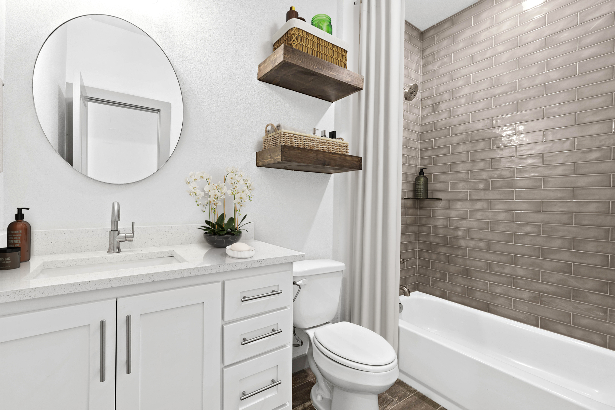 Glass shower doors or partial partitions make the bathroom look less crowded than opaque barriers. Lightweight materials also make it easier to install floating fixtures, further improving floor space. Durable finishes are essential for longevity, ensuring the bathroom remains practical and stylish for years.